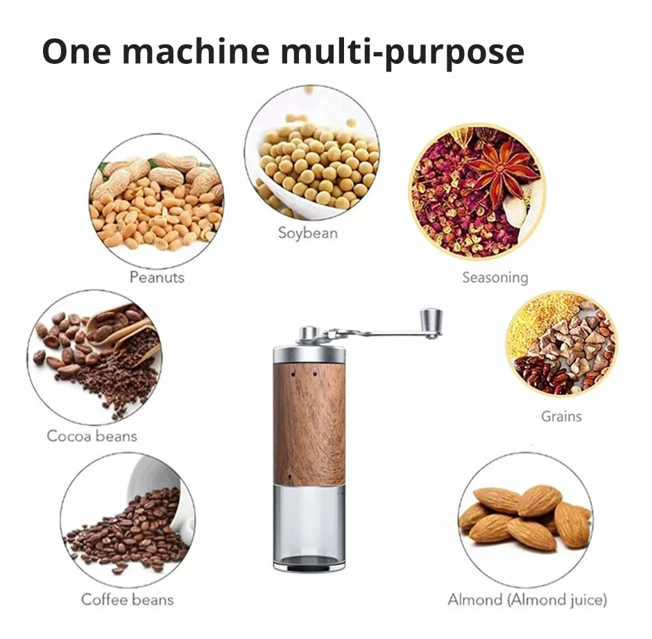 Elevate your daily ritual with our Manual Coffee Grinder, designed for coffee lovers who crave fresh, aromatic, café-quality coffee no matter where they are. Made from durable stainless steel with a beautifully crafted wood-grain finish, this portable grinder combines precision, style, and reliability in one powerful tool.